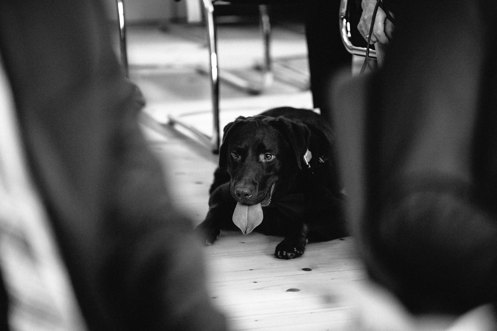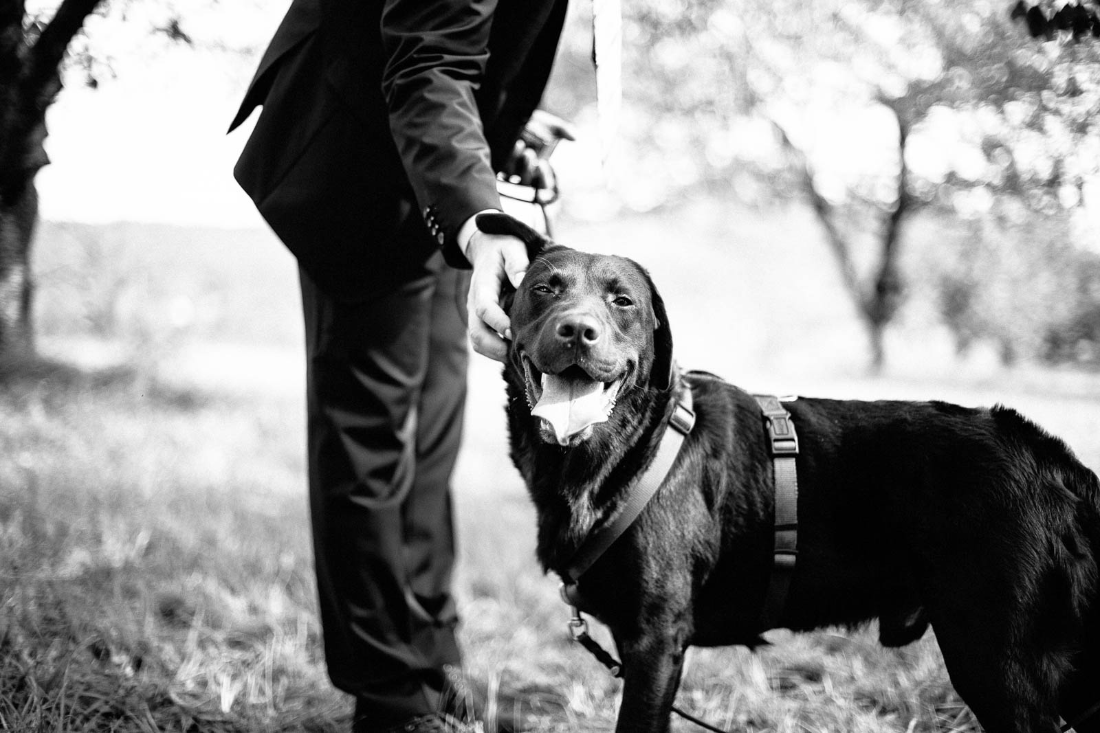 Heiraten mit Hund ist ein Riesenspaß. Man muss eben mit ein paar Bellern beim Ja- Wort rechnen oder der ein oder anderen Sabberspur auf dem Lederschuh. Ich bin bereit für die nächste Hochzeit à trois. Irgendjemand hier mit Papagei, Einhorn oder Hausziege unterwegs?
