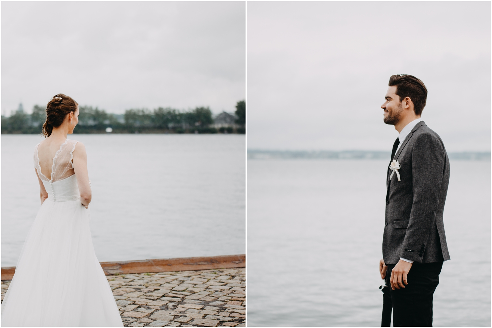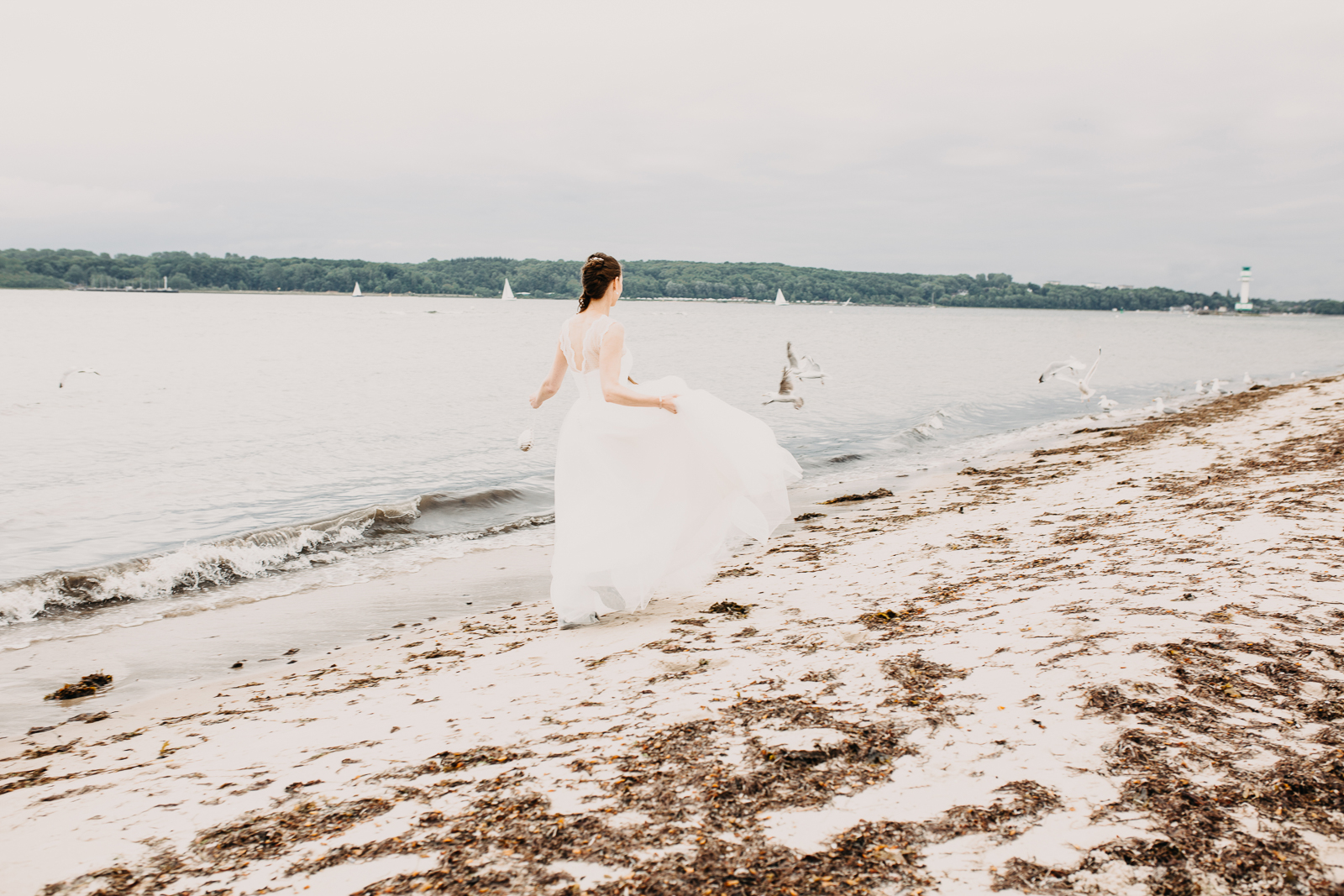 Jedes Mal auf’s Neue fällt mir dieses Loslassen schwer. Es beginnt ganz schleichend: Der erste Kontakt beginnt nicht selten über ein Jahr vor dem Hochzeitstermin. Man plant zusammen. Überlegt sich Locations. Details. Fotos werden geschickt. „Schau mal, so wird mein Brautstrauß aussehen!“ Und dann natürlich der Tag selbst. Das Chaos. Die Aufregung. Die Liebe. All diese Emotionen. Tja, und ich mittendrin. Mittendrin in allem. Und ich liebe es, aufgenommen zu werden, bei all diesen lieben Menschen, die mir ihr ganzes Vertrauen schenken, um genau das festzuhalten. Jetzt sitze ich hier vor meinem PC und eine kleine gerührte Träne kullert mir die Wange herunter. Und auch, wenn ich mich selber gerade kitschig finde, wische ich sie nicht weg. Denn genau das ist es, was mich antreibt – und gleichzeitig den Abschied so verdammt schwer macht: Meine Kunden. Ihr eben. Birte und Thomas, ihr habt mich an diesem verregneten Juliwochenende so unglaublich warm empfangen. Bei orkanartigem Sturm haben wir uns im Kaffee Resonanz getroffen. (Der Wandschrank, der gleichzeitig Toiletteneingang war bleibt mein absolutes Highlight und unvergessen.) Unser Limonadendate am Abend vor der Hochzeit – obwohl ihr sicher noch so viel anderes zu tun hattet. Eure Trauung im Leuchtturm, in den exakt 12 Leute hineinpassen. Das Shooting, bei dem ich gelegentlich vor lauter Meereuphorie das Fotografieren vergessen habe. Thomas, wie er nach einem Seestern im Sand gesucht hat. Eure Feier, bei der ich mich sofort mittendrin gefühlt habe. Kein Fotograf. Sondern eine Freundin.