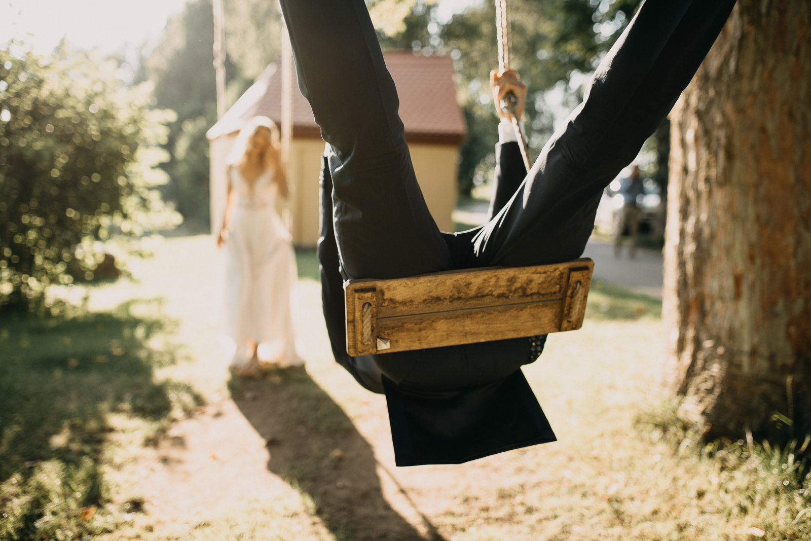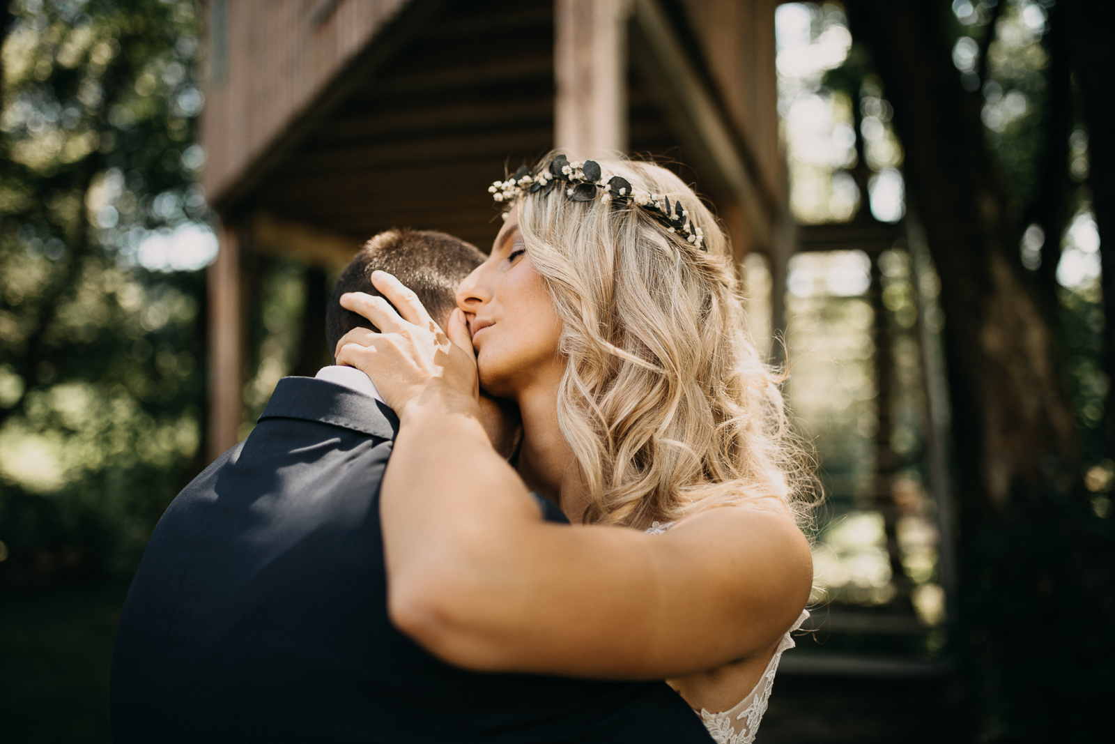 Sommer wie er nicht schöner sein kann - hell, voller Lachen, kühlen Getränken und warmen Licht. Die Location ist mega - alleine das Baumhaus, in dem die Braut geschlafen hat und sich dann morgens auf dem Balkon fertig gemacht hat, so schön! Ein kleiner Teich, wo die freie Trauung stattfinden konnte und ein riesiger Garten mit viel Platz auch für eine große Hochzeitsgesellschaft.