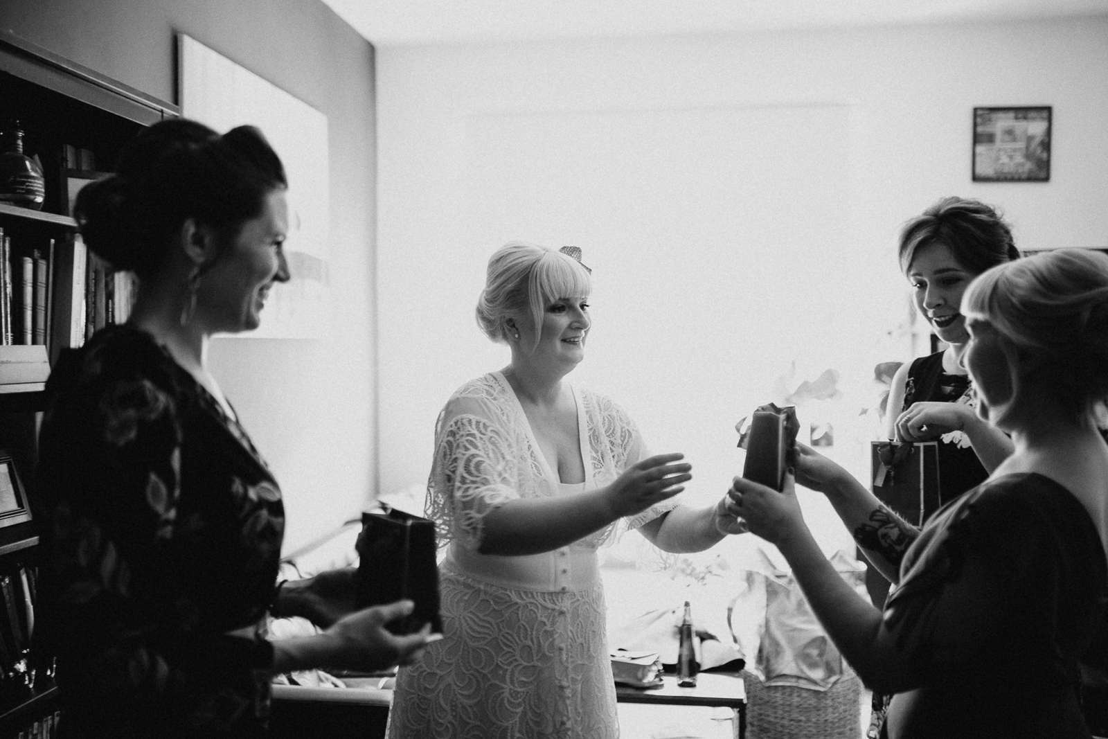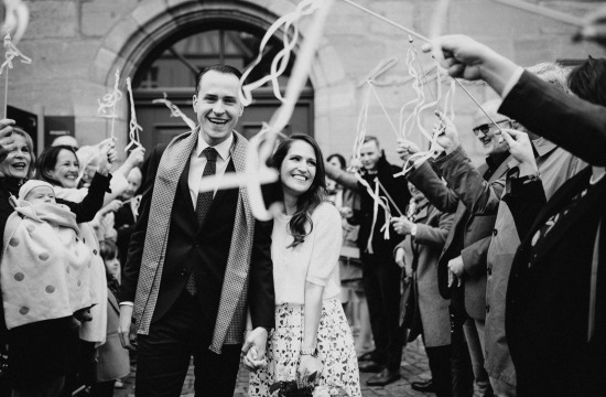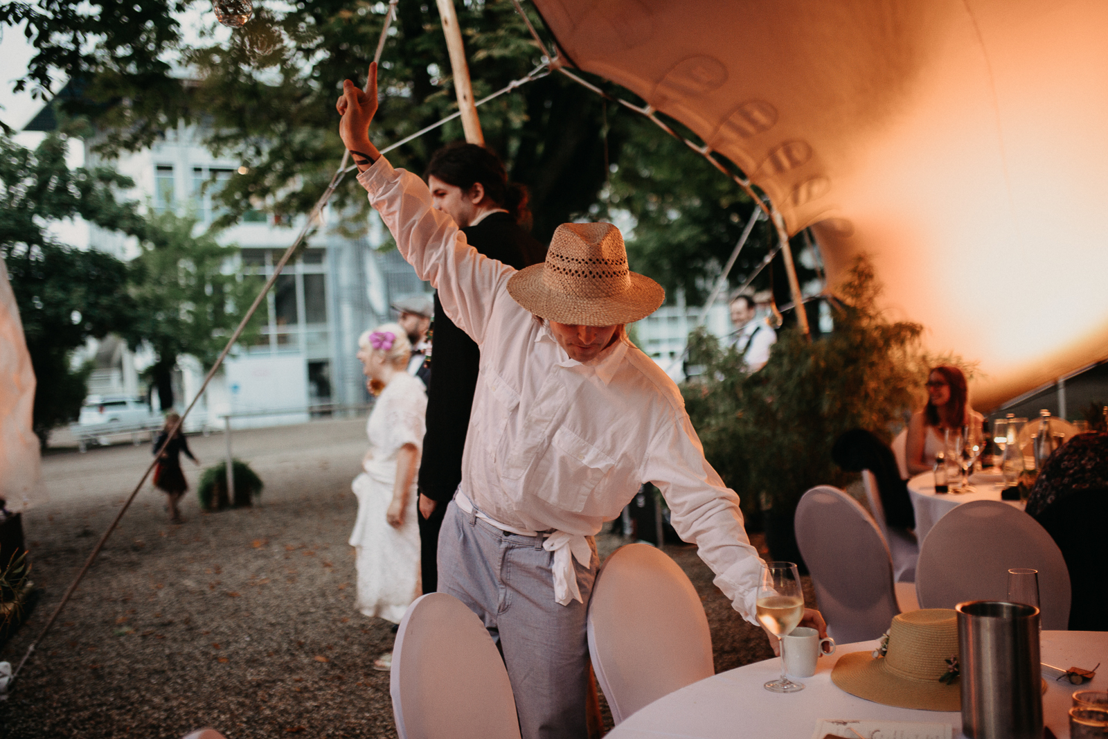 Im Juli ging es für mich zum ersten Mal überhaupt für Janas und Pulads Hochzeit nach Düsseldorf. Und schon während ich diese Zeilen tippe, muss ich ein klein wenig lächeln in Gedanken an diesen Tag im Juli. Hochzeiten zu belgeiten ist immer wieder aufs Neue wie ein kleiner Zoobesuch: Irgendwie weiß man schon, was einen ungefähr erwartet und doch ist es immer wieder anders, neu und einzigartig. Angefangen mit der Reportage haben wir direkt mit den Vorbereitungen – Pulad war dafür mit Freunden und Familie bei den Eltern – Jana in der eigenen Wohnung mit all ihren Mädels. Wenn du dann erstmal die halbe Innendekoration fotografierst weißt du: Dein Brautpaar ist cooler als du. Zur Freien Trauung ging es stilvoll weiter mit zwei wunderschönen Oldtimern und als Jana von ihrem Papa zu Bräutigam und Blumenbogen geleitet wurde, spielte ein Freund den Hochzeitssong auf der E-Gitarre. Als wäre das nicht schon fabelhaft genug, gab’s dazu eine pinke Rauchbome und der Trauredner trug ein Hawaihemd. Ehrlich, ich habe geheult vor Glück.