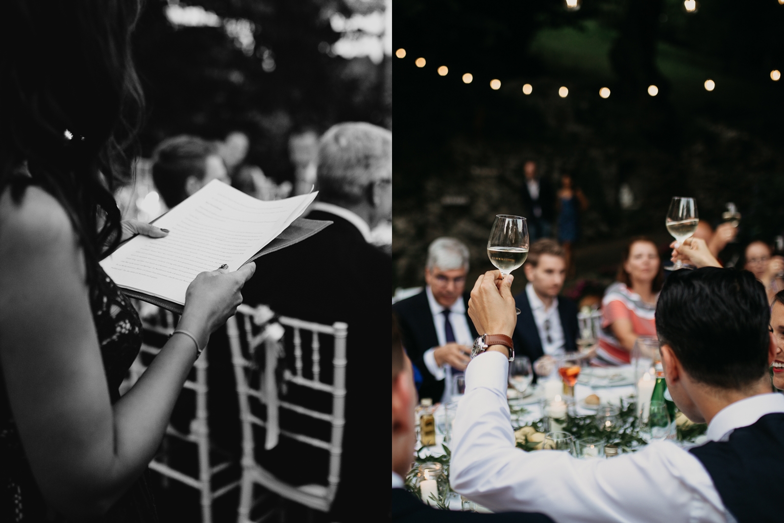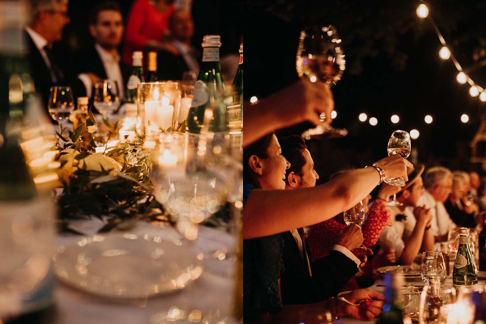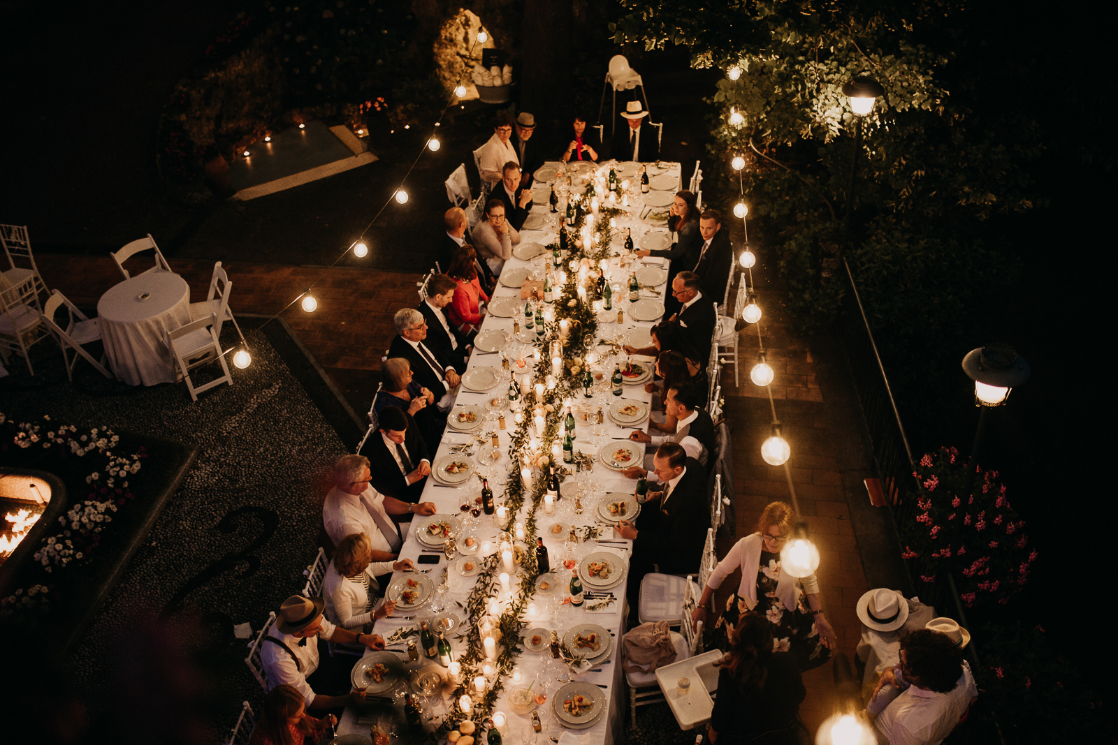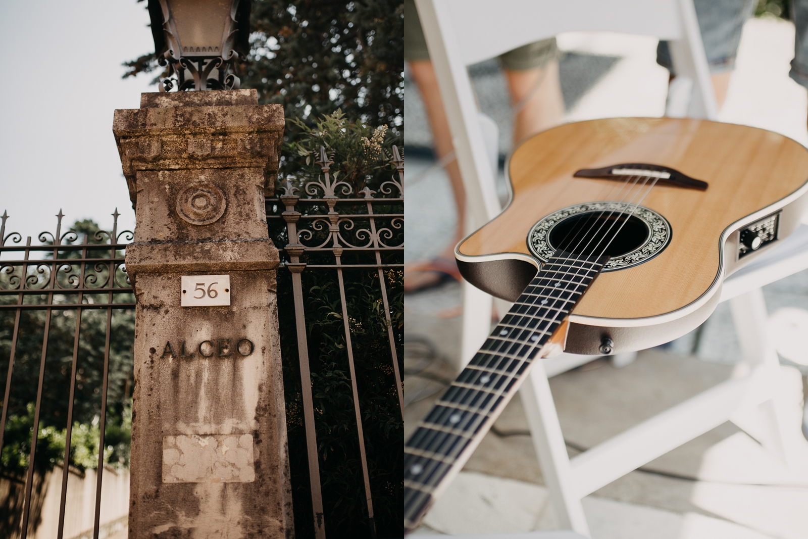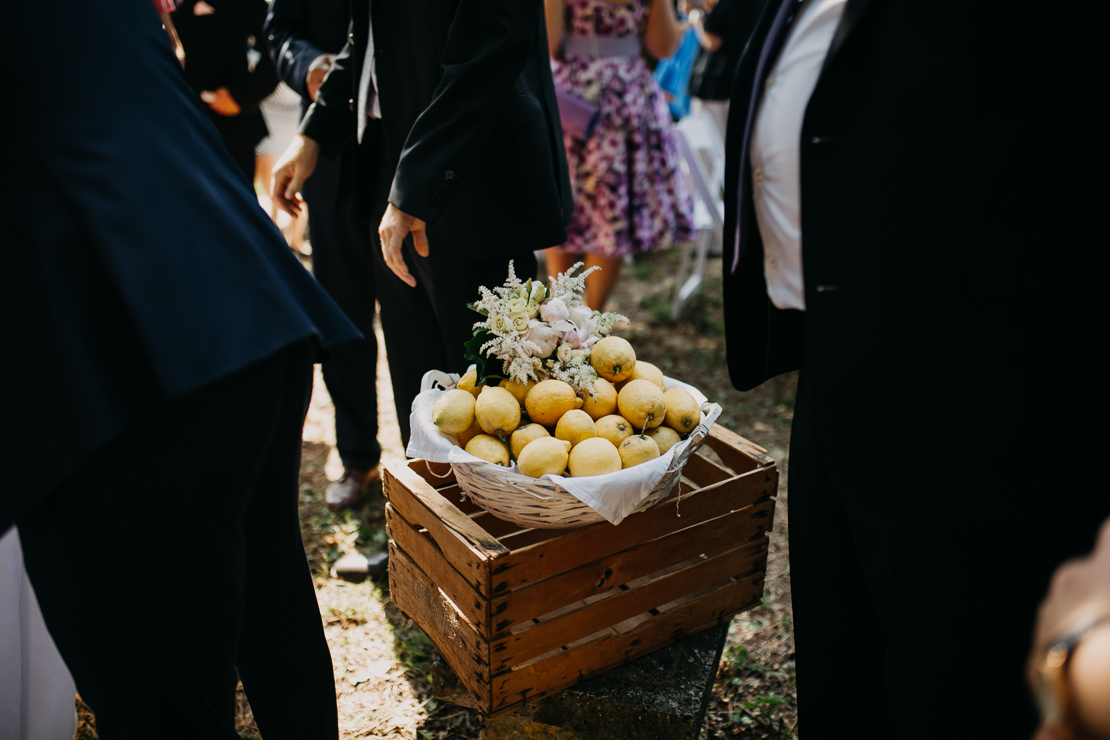Als ich mit meinem kleinem mintfarbenen Adam nach langer Reise endlich in dem kleinem italienischen Örtchen ankomme, sind die defekte Klimaanlage, Stau und mein untreues Navigationsgerät sofort vergessen: Italien hat mich. Ab der ersten Sekunde. Das passiert mir jedes Mal und ich glaube, es ist das Licht. Diese ganz italieneigene Lichtfarbe, das mit seiner Wärme und seinen Lichtspielen jeden Ort verzaubert. Gleich am ersten Abend gab es mit allen Gästen in einer Taverne ein großes gemeinsames Abendessen und wer sich bis dahin noch nicht kannte, hatte diese kleine unerhebliche Lücke beim Zubettgehen bereits geschlossen. Die Location, die sich Vanessa und Micha ausgesucht hatten, hat mir einmal komplett die Sprache verschlagen und – es war schlicht gesagt wunderschön dort. Die engsten Familienmitglieder haben alle dort zusammen das Wochenende verbracht, am Tag der Hochzeit selbst fand einfach alles draußen statt: die freie Trauung, das Abendessen und auch die Tanzfläche war unter freiem Himmel.