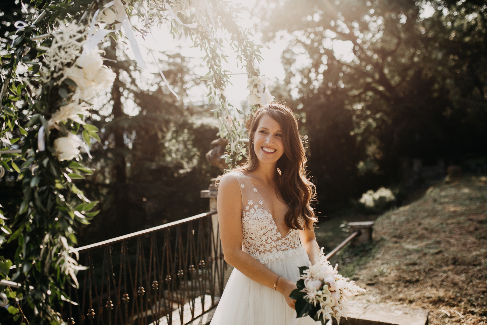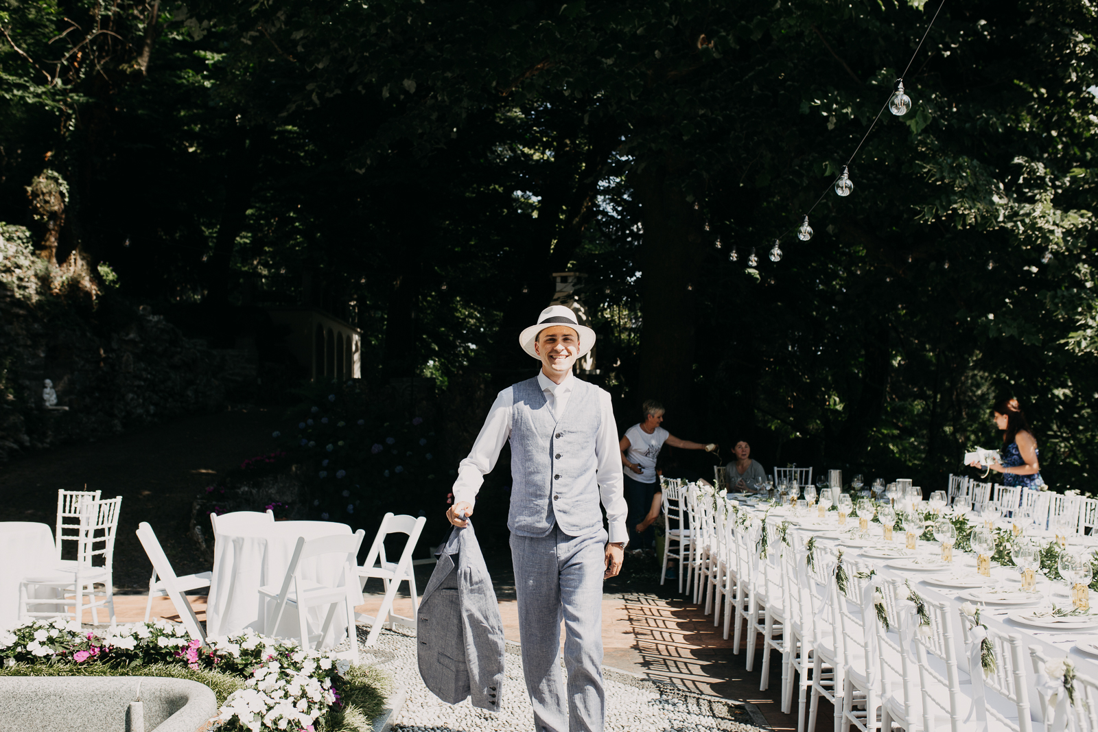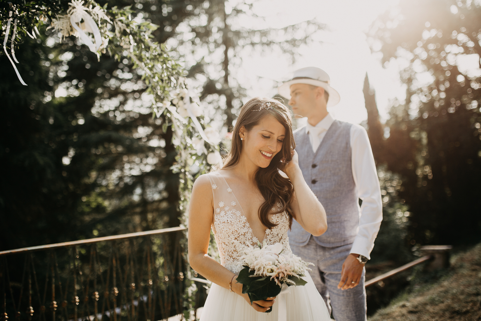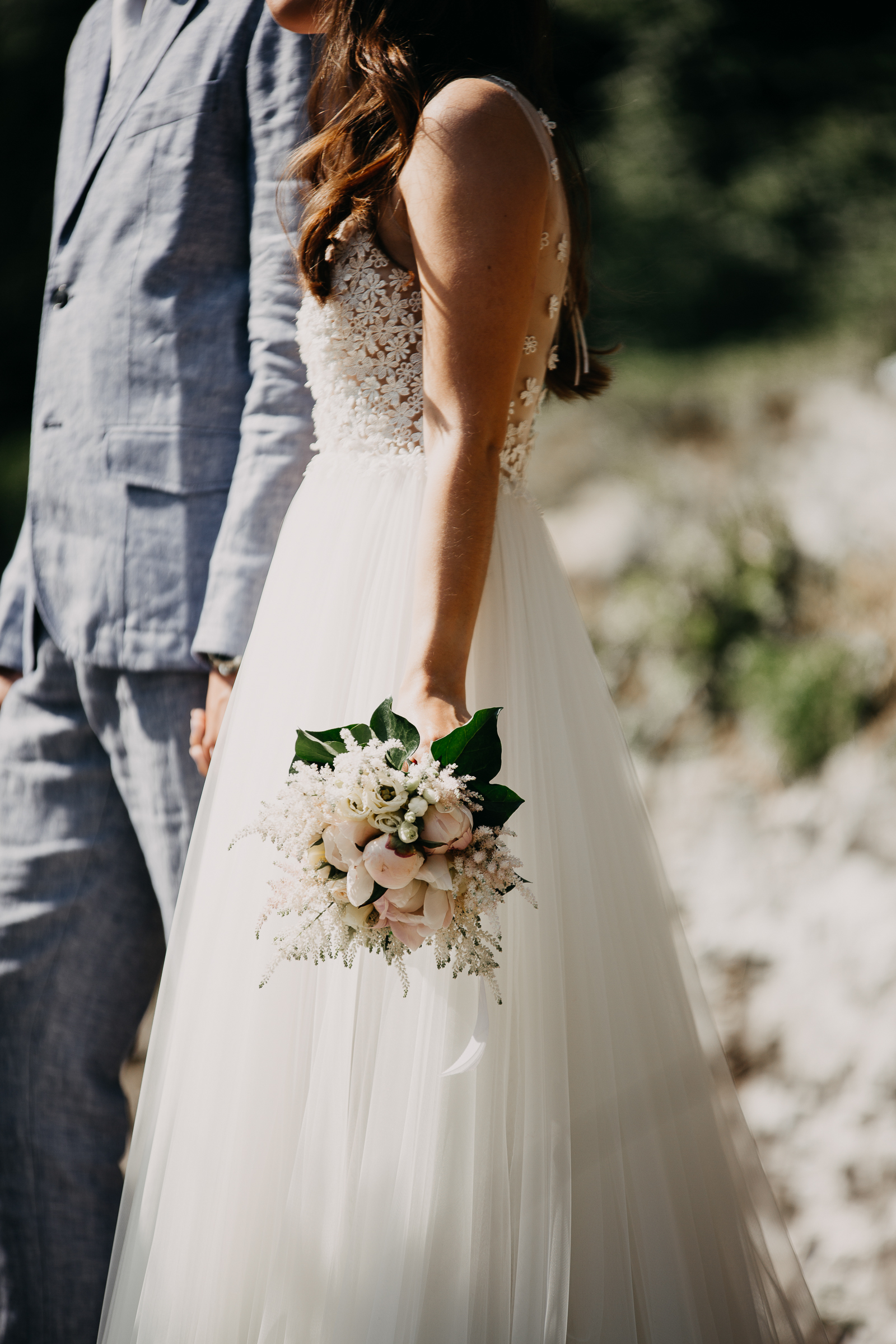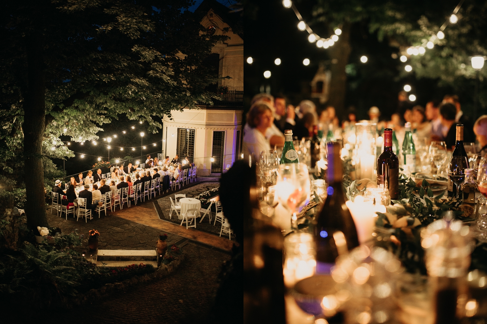Als ich mit meinem kleinem mintfarbenen Adam nach langer Reise endlich in dem kleinem italienischen Örtchen ankomme, sind die defekte Klimaanlage, Stau und mein untreues Navigationsgerät sofort vergessen: Italien hat mich. Ab der ersten Sekunde. Das passiert mir jedes Mal und ich glaube, es ist das Licht. Diese ganz italieneigene Lichtfarbe, das mit seiner Wärme und seinen Lichtspielen jeden Ort verzaubert. Gleich am ersten Abend gab es mit allen Gästen in einer Taverne ein großes gemeinsames Abendessen und wer sich bis dahin noch nicht kannte, hatte diese kleine unerhebliche Lücke beim Zubettgehen bereits geschlossen. Die Location, die sich Vanessa und Micha ausgesucht hatten, hat mir einmal komplett die Sprache verschlagen und – es war schlicht gesagt wunderschön dort. Die engsten Familienmitglieder haben alle dort zusammen das Wochenende verbracht, am Tag der Hochzeit selbst fand einfach alles draußen statt: die freie Trauung, das Abendessen und auch die Tanzfläche war unter freiem Himmel.