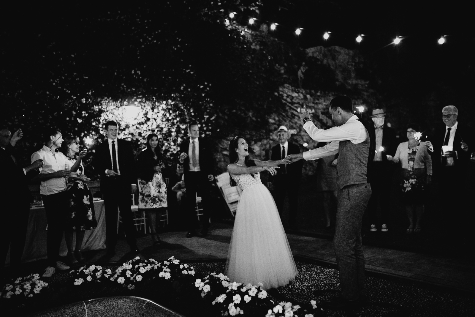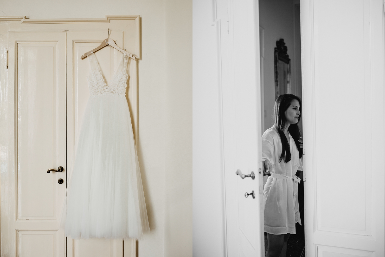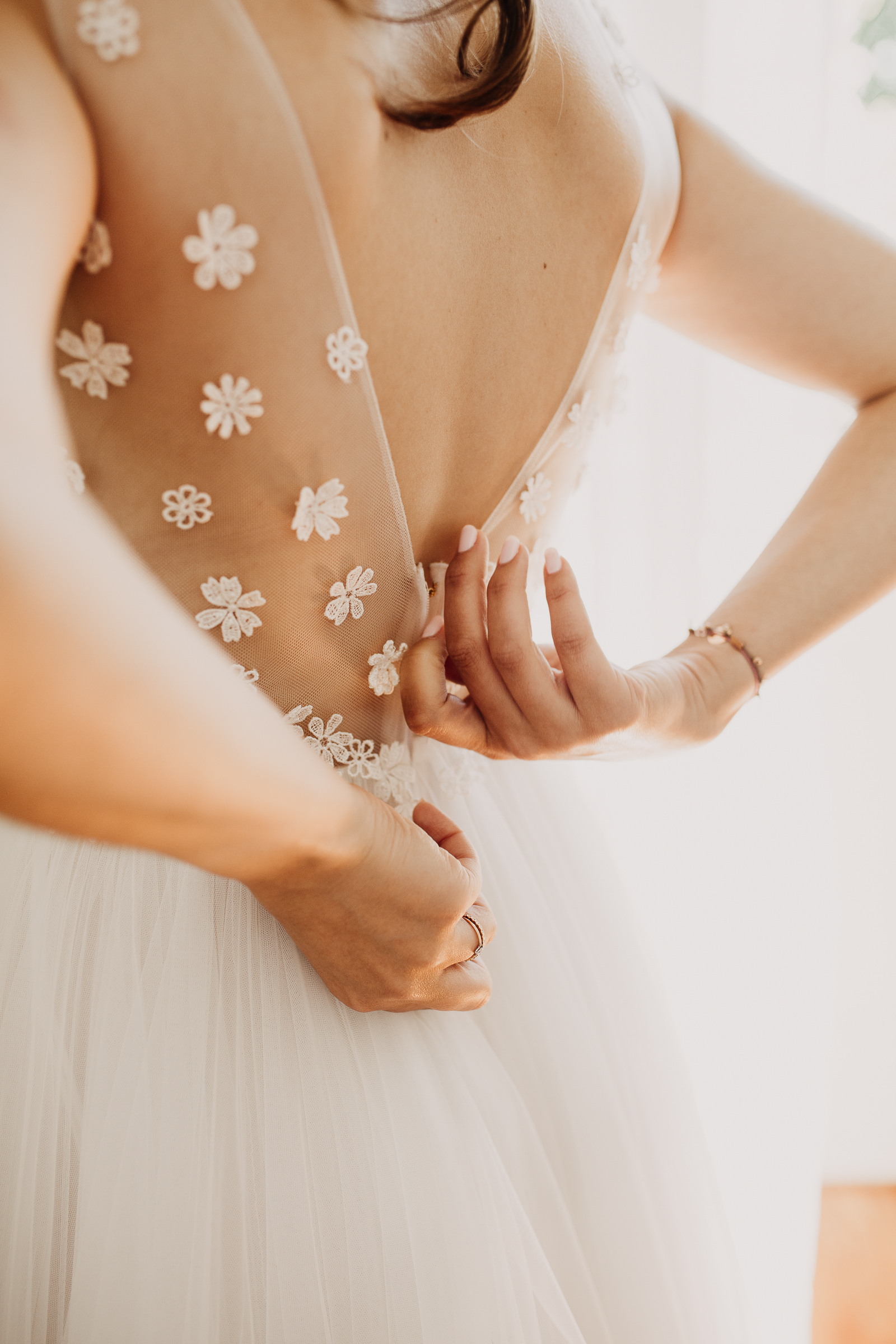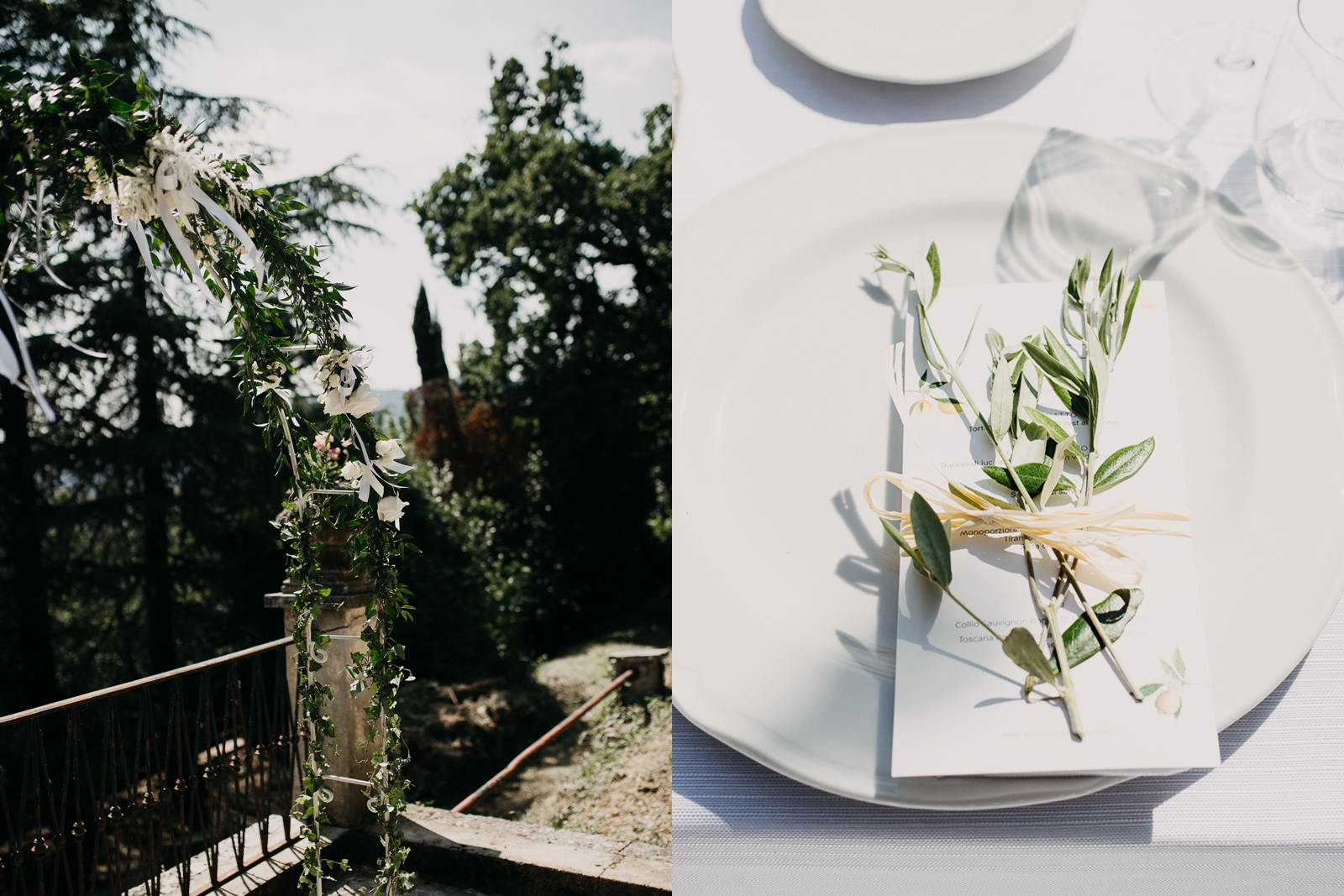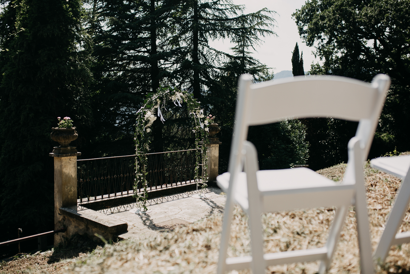Als ich mit meinem kleinem mintfarbenen Adam nach langer Reise endlich in dem kleinem italienischen Örtchen ankomme, sind die defekte Klimaanlage, Stau und mein untreues Navigationsgerät sofort vergessen: Italien hat mich. Ab der ersten Sekunde. Das passiert mir jedes Mal und ich glaube, es ist das Licht. Diese ganz italieneigene Lichtfarbe, das mit seiner Wärme und seinen Lichtspielen jeden Ort verzaubert. Gleich am ersten Abend gab es mit allen Gästen in einer Taverne ein großes gemeinsames Abendessen und wer sich bis dahin noch nicht kannte, hatte diese kleine unerhebliche Lücke beim Zubettgehen bereits geschlossen. Die Location, die sich Vanessa und Micha ausgesucht hatten, hat mir einmal komplett die Sprache verschlagen und – es war schlicht gesagt wunderschön dort. Die engsten Familienmitglieder haben alle dort zusammen das Wochenende verbracht, am Tag der Hochzeit selbst fand einfach alles draußen statt: die freie Trauung, das Abendessen und auch die Tanzfläche war unter freiem Himmel.
