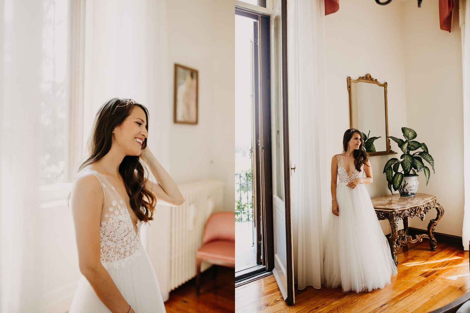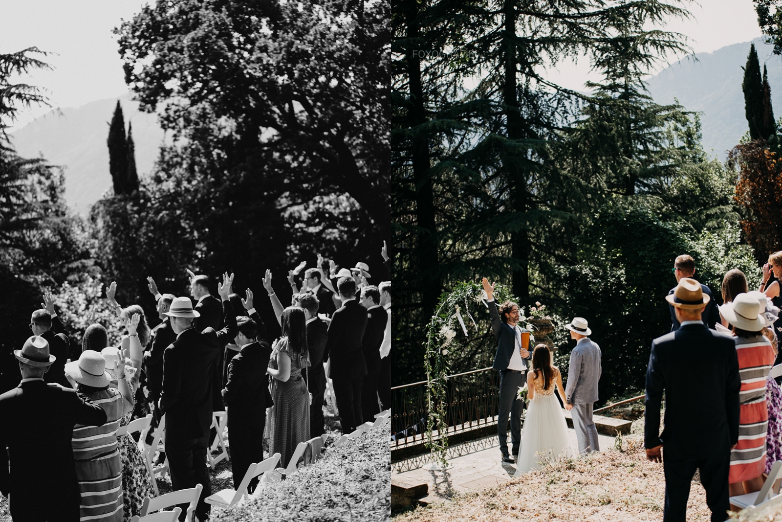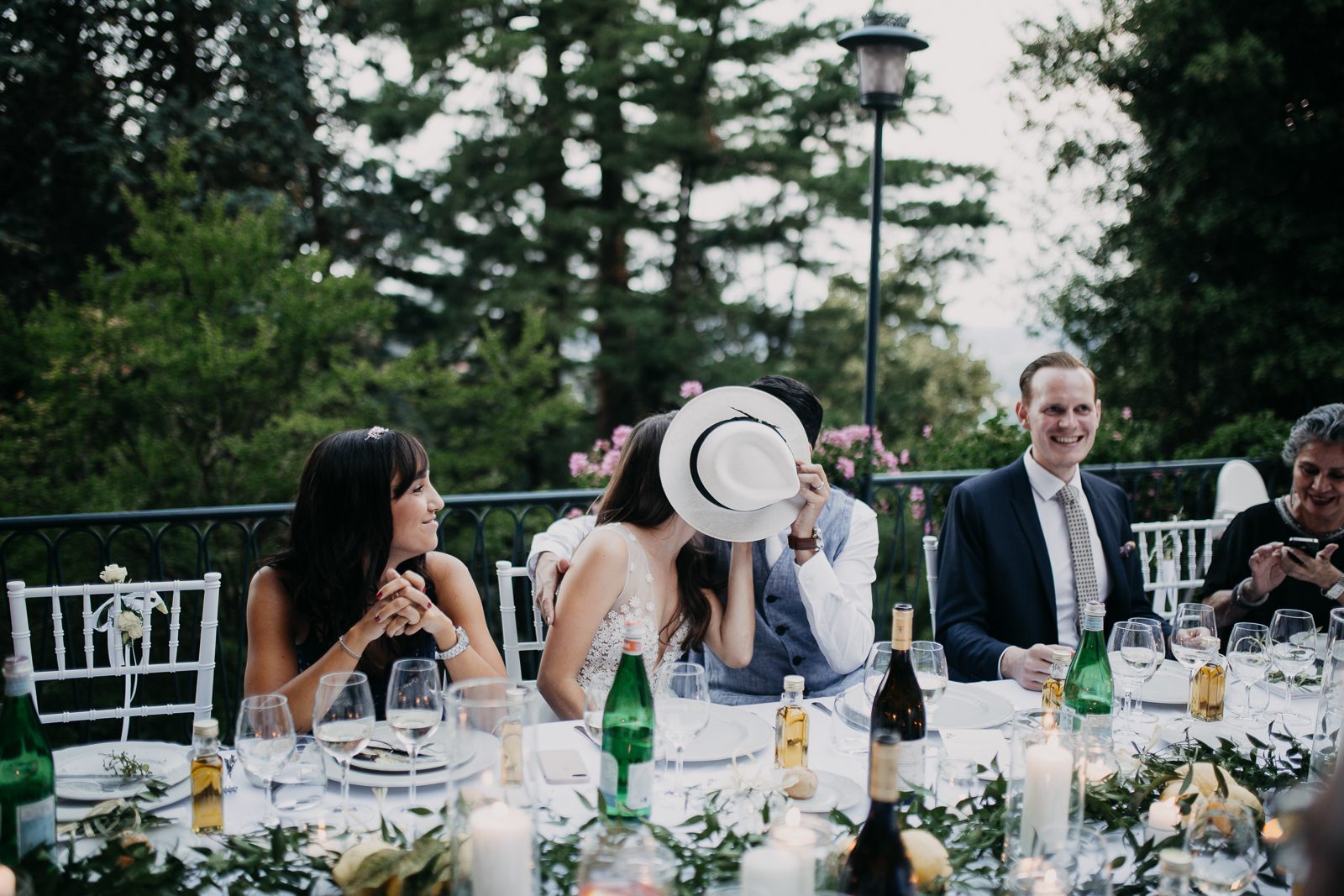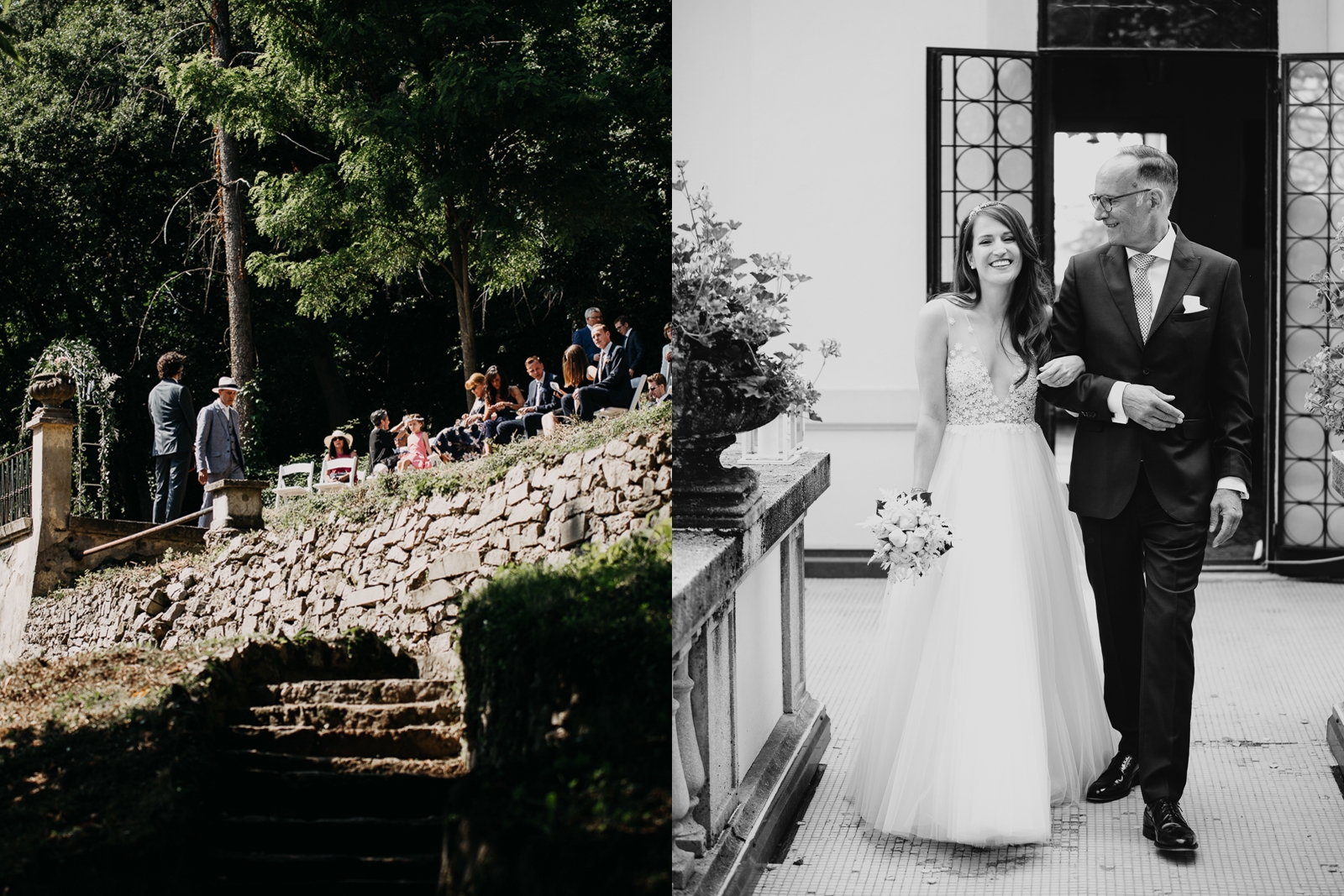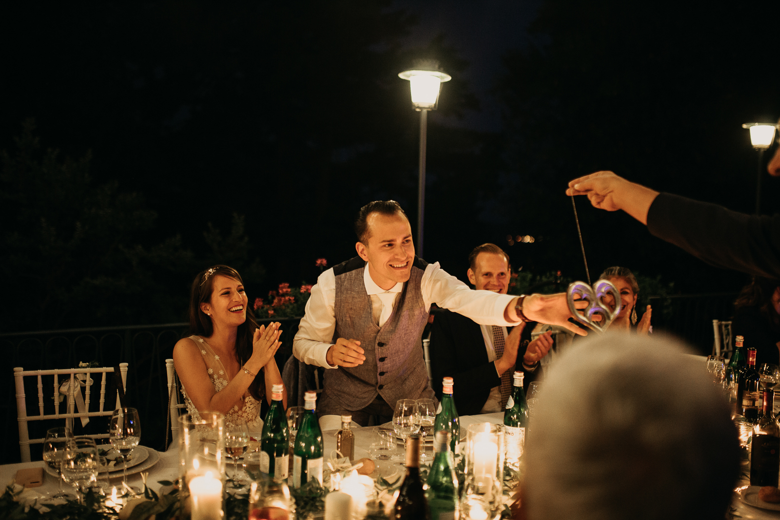 Als ich mit meinem kleinem mintfarbenen Adam nach langer Reise endlich in dem kleinem italienischen Örtchen ankomme, sind die defekte Klimaanlage, Stau und mein untreues Navigationsgerät sofort vergessen: Italien hat mich. Ab der ersten Sekunde. Das passiert mir jedes Mal und ich glaube, es ist das Licht. Diese ganz italieneigene Lichtfarbe, das mit seiner Wärme und seinen Lichtspielen jeden Ort verzaubert. Gleich am ersten Abend gab es mit allen Gästen in einer Taverne ein großes gemeinsames Abendessen und wer sich bis dahin noch nicht kannte, hatte diese kleine unerhebliche Lücke beim Zubettgehen bereits geschlossen. Die Location, die sich Vanessa und Micha ausgesucht hatten, hat mir einmal komplett die Sprache verschlagen und – es war schlicht gesagt wunderschön dort. Die engsten Familienmitglieder haben alle dort zusammen das Wochenende verbracht, am Tag der Hochzeit selbst fand einfach alles draußen statt: die freie Trauung, das Abendessen und auch die Tanzfläche war unter freiem Himmel.