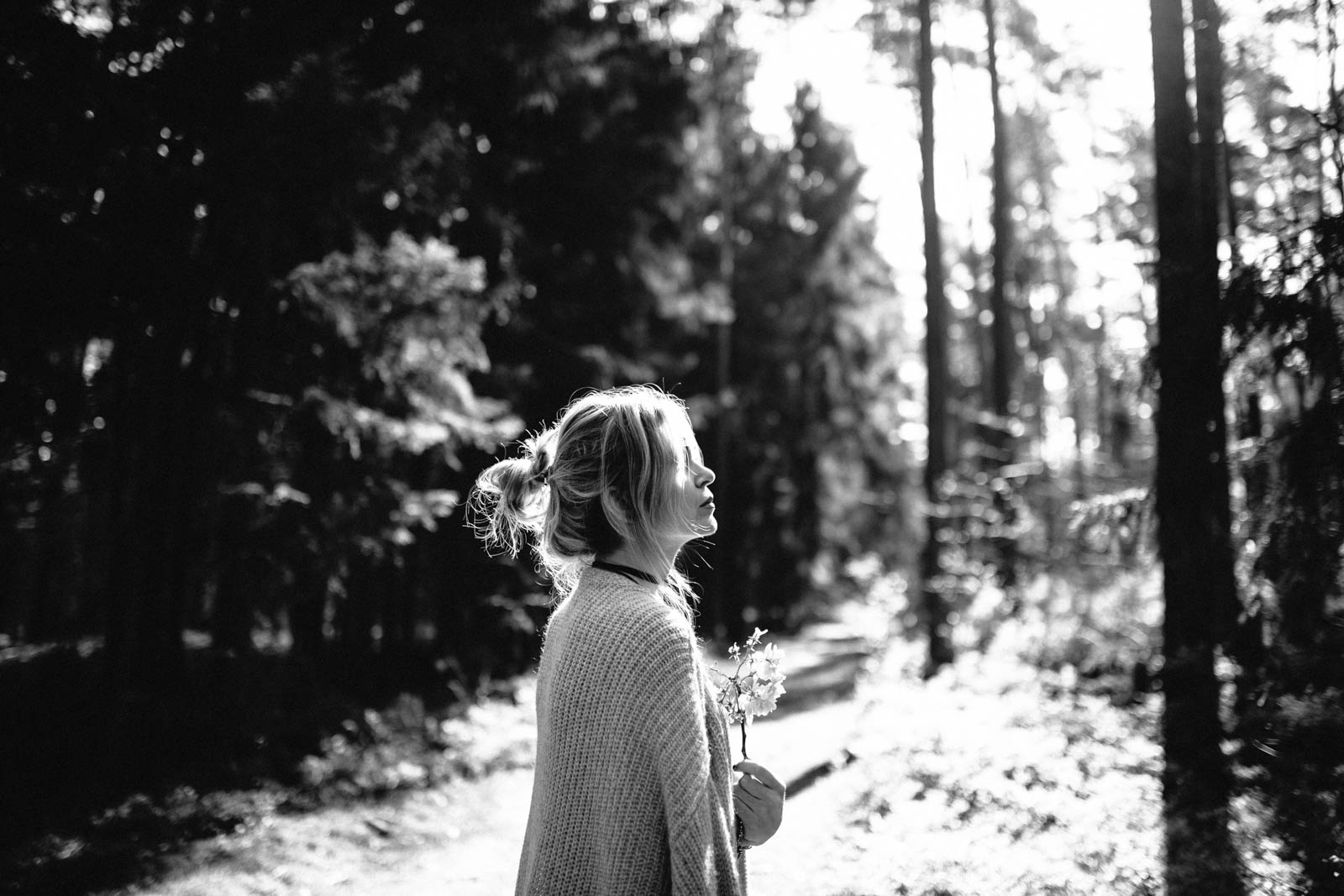 Wer schüchtern ist, der ist es eben. Wem es schwer fällt, auf Kommando zu lachen, der sollte das auch nicht tun. Es ist gar nicht so sehr die Unsicherheit, die uns nach unten zieht, sondern die Tatsache, dass wir sie uns so übel nehmen. Nicht die dicken Oberschenkel, die große Nase, die dünnen Haare sind das Problem – sondern das man sich darüber ärgert. Und genau deswegen lasse ich Amila ihren ganz eigenen Rythmus finden beim Shooting. Ich sage nicht, sie soll sich jetzt herumdrehen und mich ansehen – denn ich spüre, sie ist noch nicht soweit. Stattdessen passe ich mich an. Fotografiert zu werden ist ähnlich als würde man eine Zwiebel schälen und Schicht um Schicht Unsicherheit und Komplexe entfernen, bis man dann plötzlich nackt ist. Nackt mit Klamotten. Unverwundet natürlich.